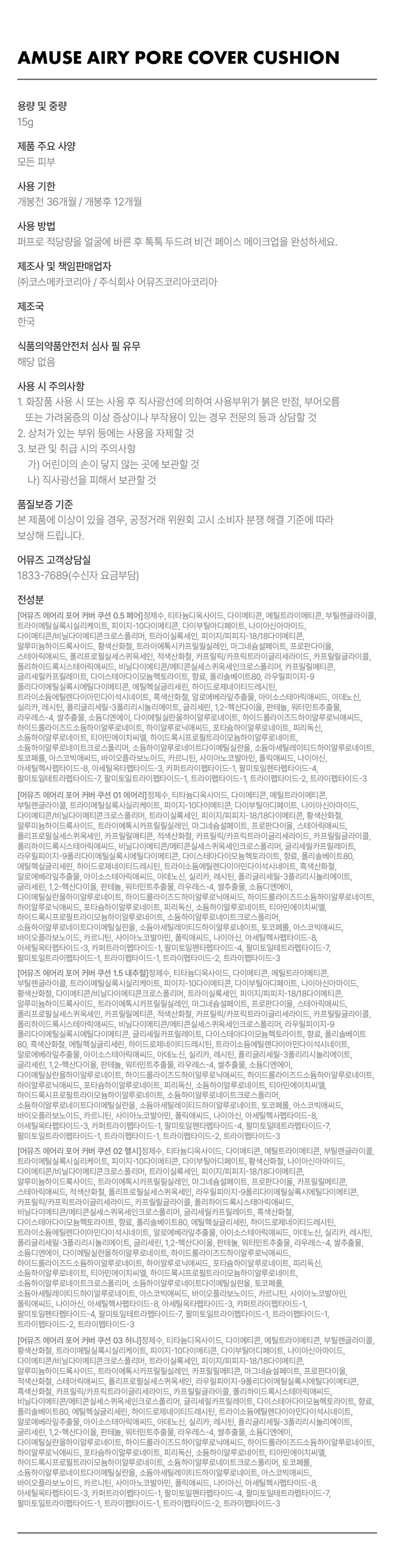 [Set]【Amuse】Airy Pore Cover Cushion
