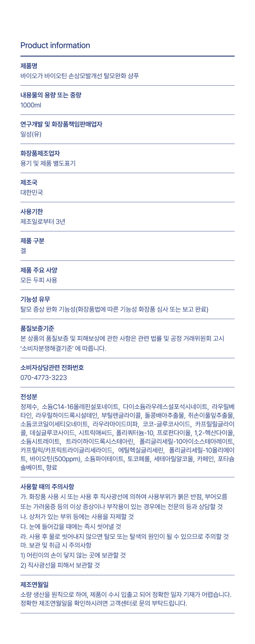 【Biorga】Anti Hair Loss Shampoo