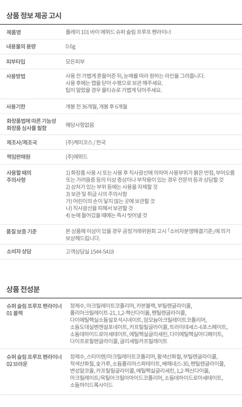 [Daiso]【Etude】Play 101 Super Slim Proof Penliner
