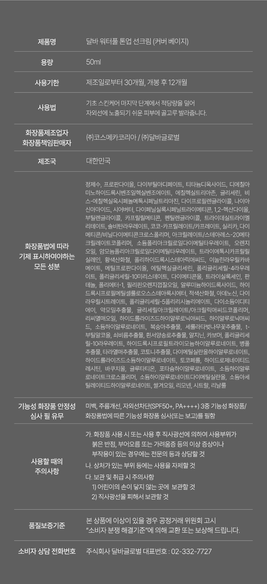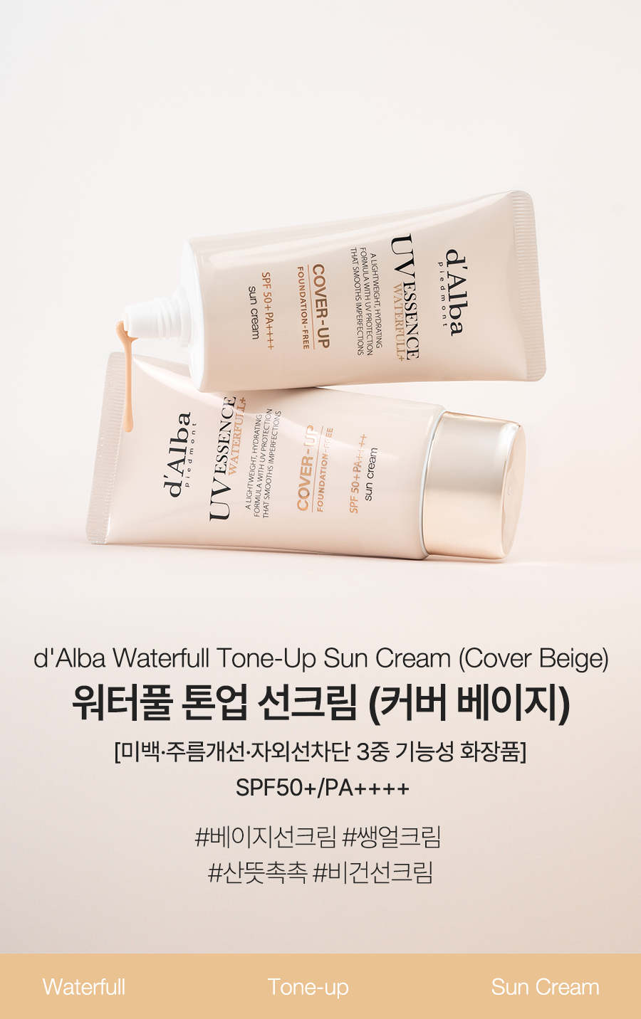 【d'Alba】Waterfull Tone-Up Sun Cream (Cover Beige)